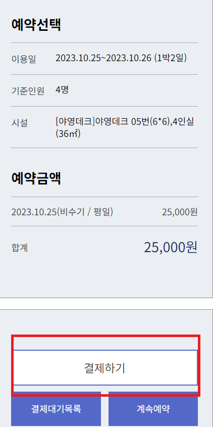 5. 결제하기를 누르면 예약이 완료됩니다